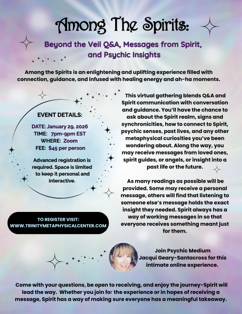 Among The Spirits is a fun, Spirit guided experience that brings together intuitive insight, healing and spirit communication in a light and uplifting way.. all in a relaxed, online setting, Each event is created to offer comfort, clarity and connection...whether you’re curious about the Spirit world, looking for guidance or a message, or simply want to enjoy the experience. Spirit always has a way of bringing through exactly what’s needed.
